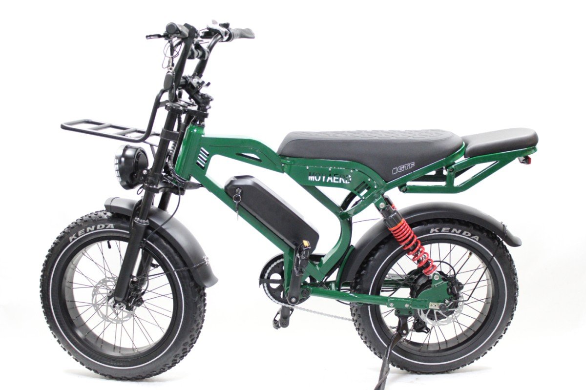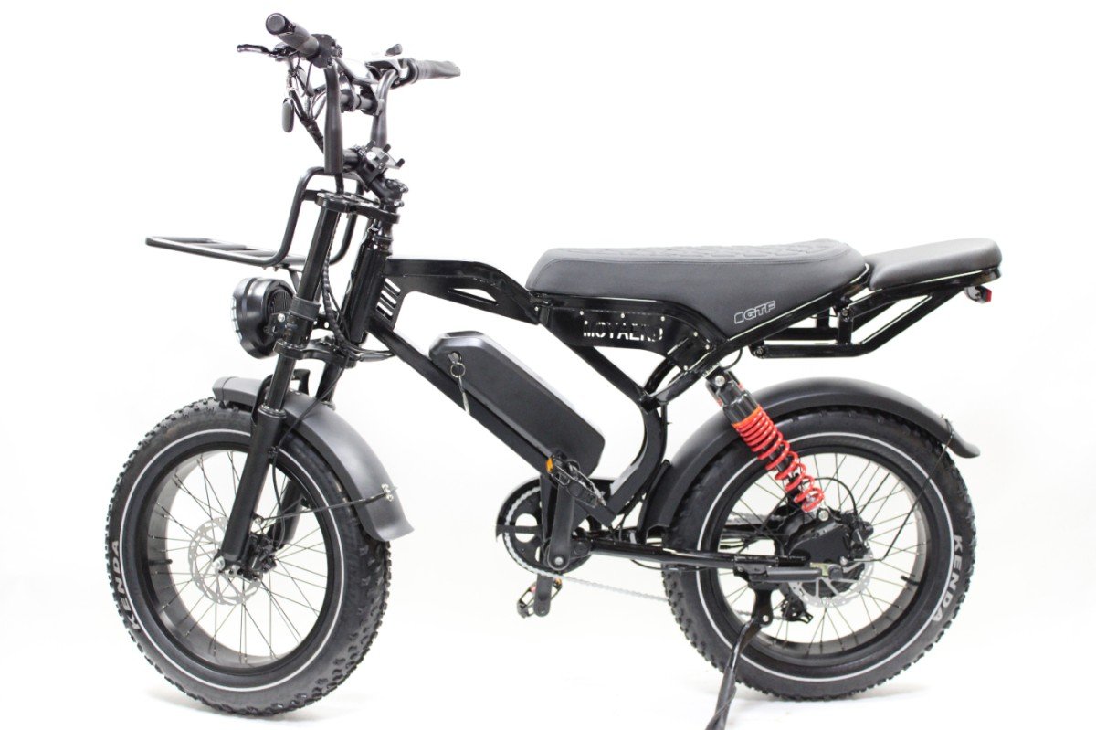 De Moyeard GTF is geen gewone e-bike. Met zijn robuuste fat tires, krachtige achterwielmotor en moped-achtig design is dit een fiets die overal de aandacht trekt — en tegelijkertijd verrassend comfortabel en praktisch rijdt. Of je nu door de stad cruist of een avontuurlijkere route pakt, de GTF handelt het allemaal moeiteloos.